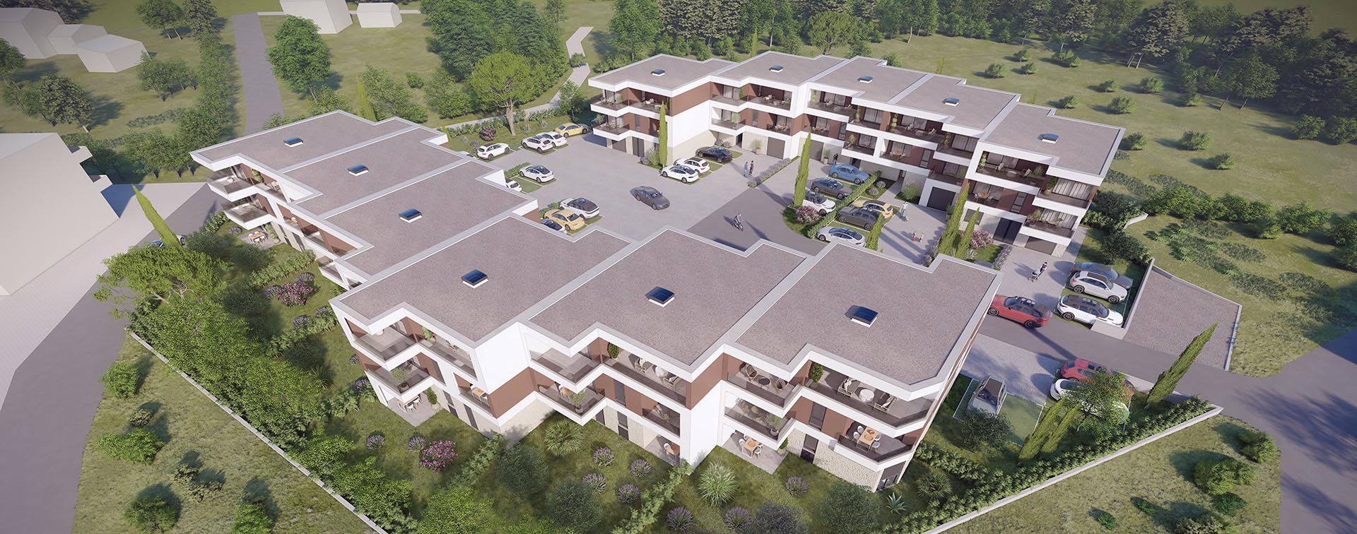 - spremišta te vanjska parkirna mjesta natkrivena sjenilom kao pripadak svakog stana;
